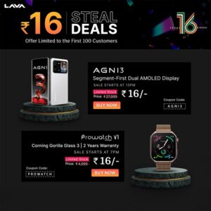 First 100 buyers get a chance to grab Agni 3 and Prowatch V1 for Rs. 16 Sale will be