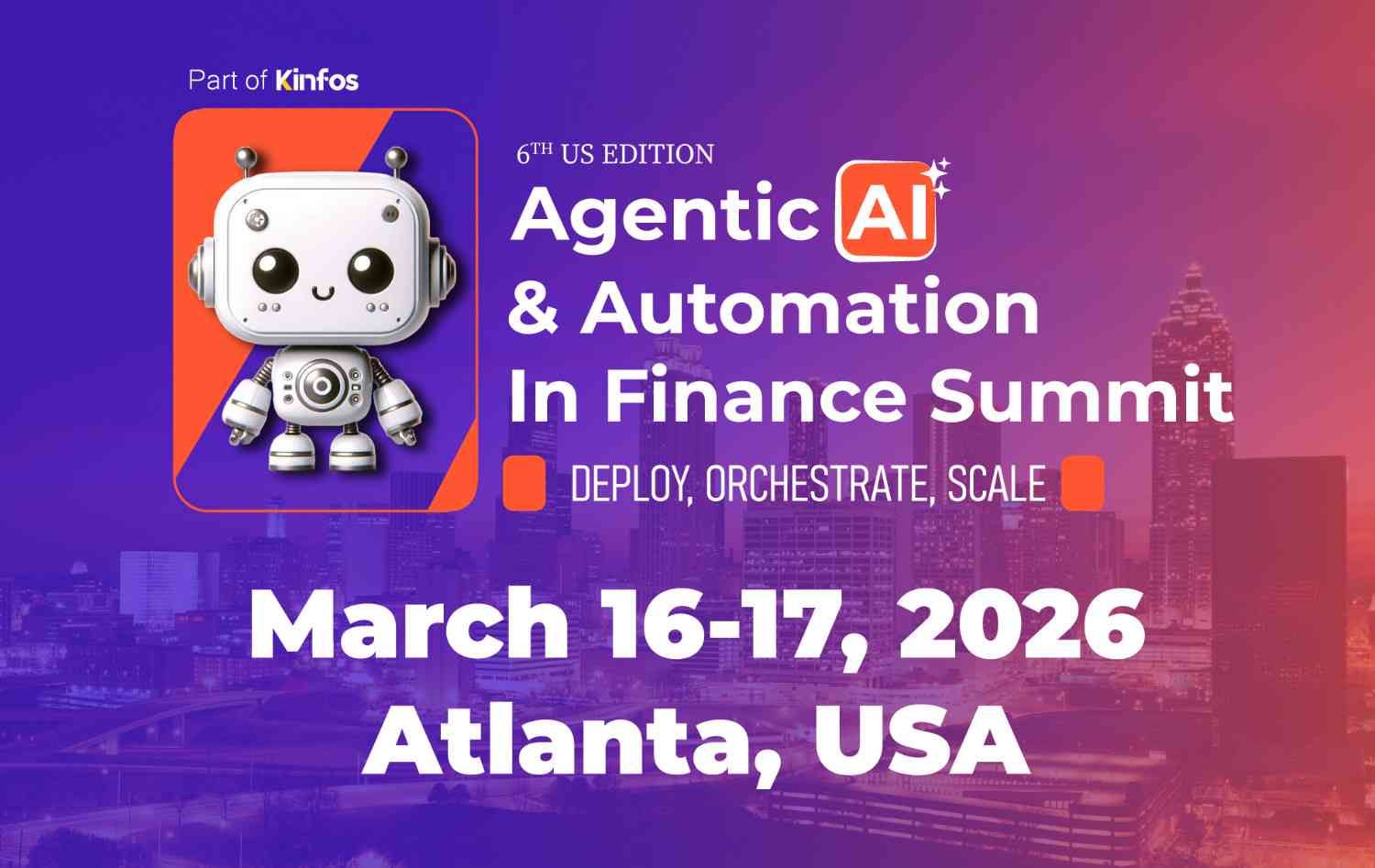 The 6th US Agentic AI & Automation in Finance Summit – Atlanta, March 16–17, 2026. This two-day, high-impact forum brings together senior leaders, innovators, and solution providers from banking, insurance, credit unions, and wealth/asset management. The summit will provide practical, real-world insights on how AI and automation are transforming operations, risk management, customer experience, compliance, and product innovation. Key topics include digital workers, low/no-code automation, predictive analytics, process mining, and fraud detection. Delegates will benefit from keynote sessions, panel discussions, interactive workshops, live demonstrations, curated networking sessions, and one-to-one meetings.